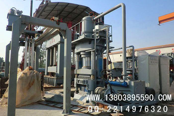 原料處理完之后,料箱里的物料經(jīng)過推拉缸的作用在主機(jī)??蚶飦砘匾苿?,提高物料的均勻度,由主機(jī)高壓壓制成型,成型后由機(jī)械手直接碼垛至蒸養(yǎng)小車。